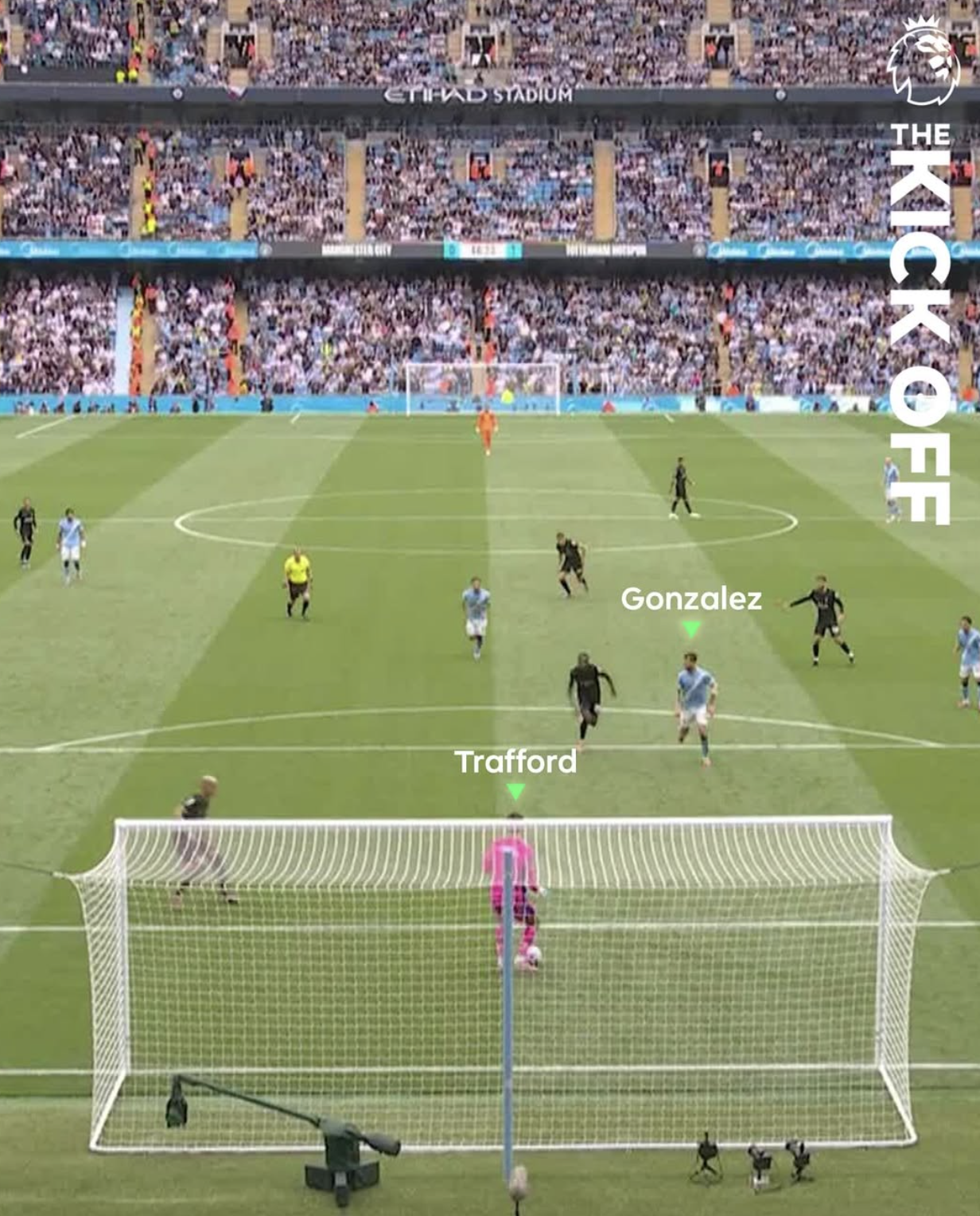 Two weeks ago, City played Tottenham and Trafford made a big no-no by receiving the ball in the box, then passing it to Tottenham's João Palhinha (not to be confused with João Pedro), who scored.