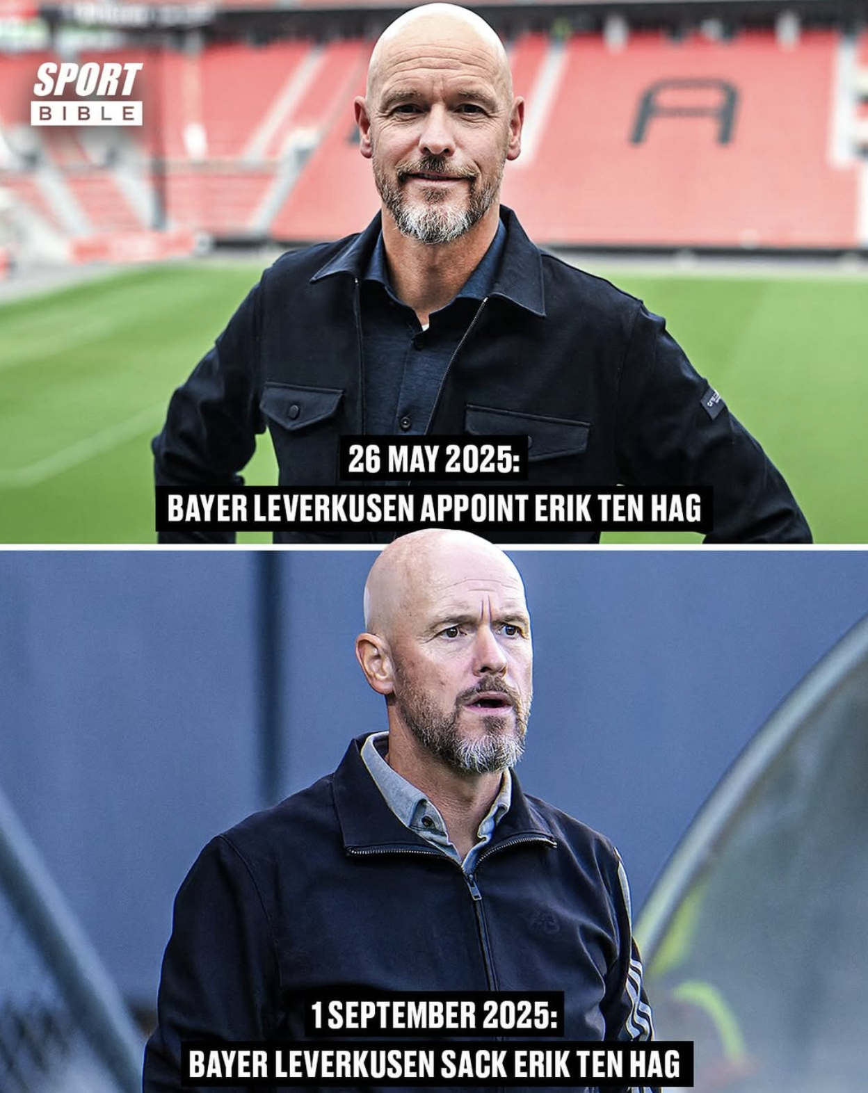 Anyway, United showed him the door, so Erik tried to reinvent himself in Germany with Bayer Leverkusen. Unfortunately, Leverkusen decided to sell pretty much their entire starting lineup, so the deck was stacked against Erik to begin with. Still, no one expected him to be fired just two games into the season. It's the quickest dismissal in Bundesliga history.