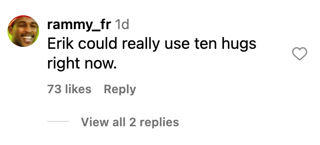 I saw an Instagram comment that said "Erik could really use ten hugs right now" and I agree with you rammy_fr!