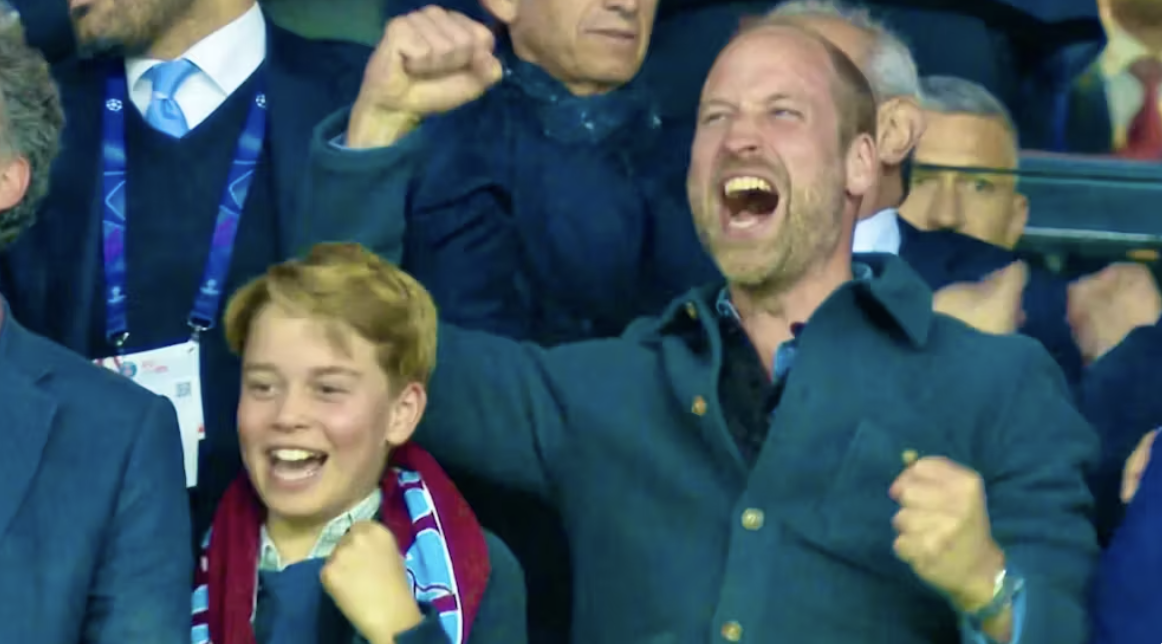 In the second half of the match, Villa scored three goals in quick succession to come within a goal of tying the game. They had PSG on the ropes! And the home crowd was ROARING. Prince William brought his mini-me, Prince George, to Villa Park and the father-son duo screamed their royal hearts out for their team!