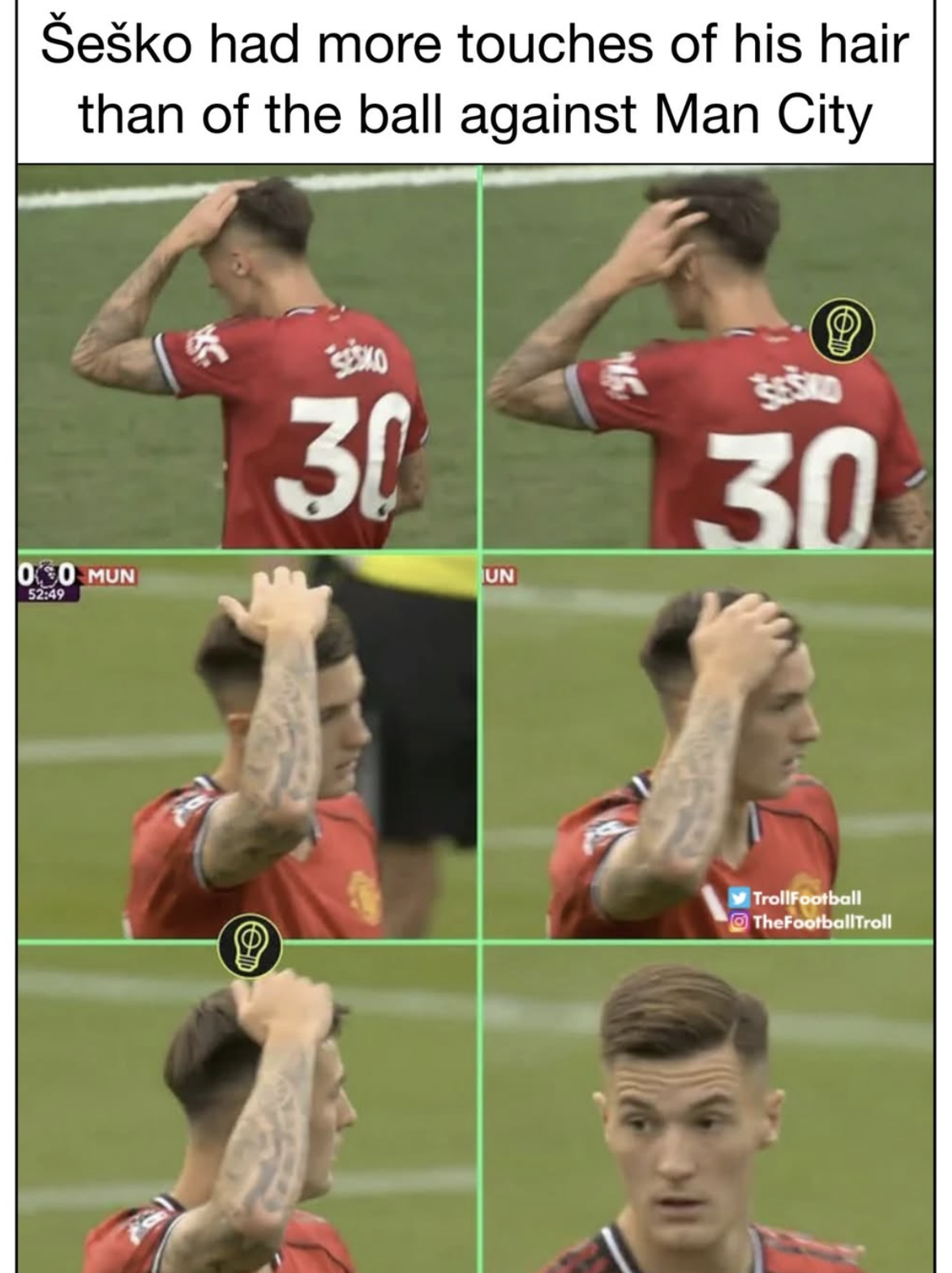 Because right now, Šeško’s trajectory is giving major Antony vibes. Reminder that Antony signed for United for £85 million, delivered a whopping 12 goals across 96 appearances and is now not even at the club anymore. Yikes.