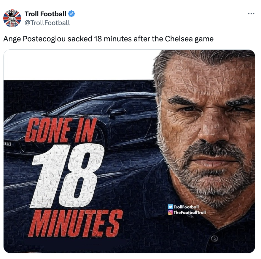 I was still on the sofa, yogurt in hand for my 3-year-old, listening to Rebecca Lowe discuss the 10AM matches when the news broke: Ange had been fired eighteen minutes after the final whistle.