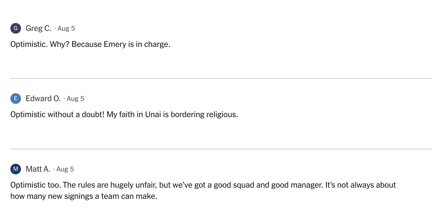I mean no offense to these players. I'm sure they're great, but the lack of attacking firepower over there in Birminghan doesn't exactly scream of ambition. It feels especially lacking for a team that played in the Champion's League just last year. Villa is blaming Profit & Sustainability rules, but how come Manchester United are just over there splashing out tons of cash hmmm?