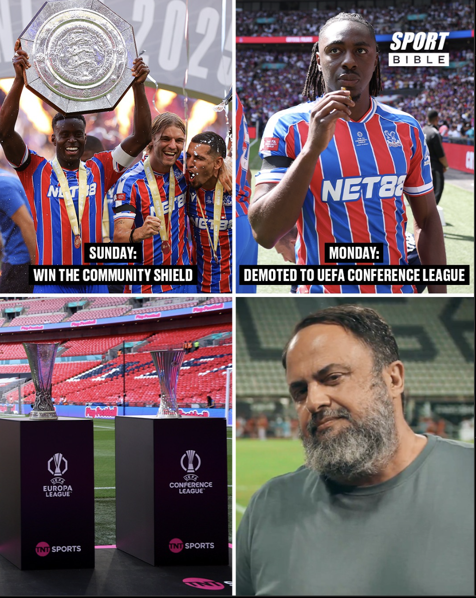 One Google later, I was still struggling to wrap my head around the fact that Crystal Palace, despite winning the FA Cup, won't be playing in the Europa League this year. Normally, that win is a golden ticket into Europe’s second-biggest competition (and its tasty prize money). But thanks to a multi-club ownership conflict with Lyon, who also qualified, Palace were bumped down to the Conference League play-offs.