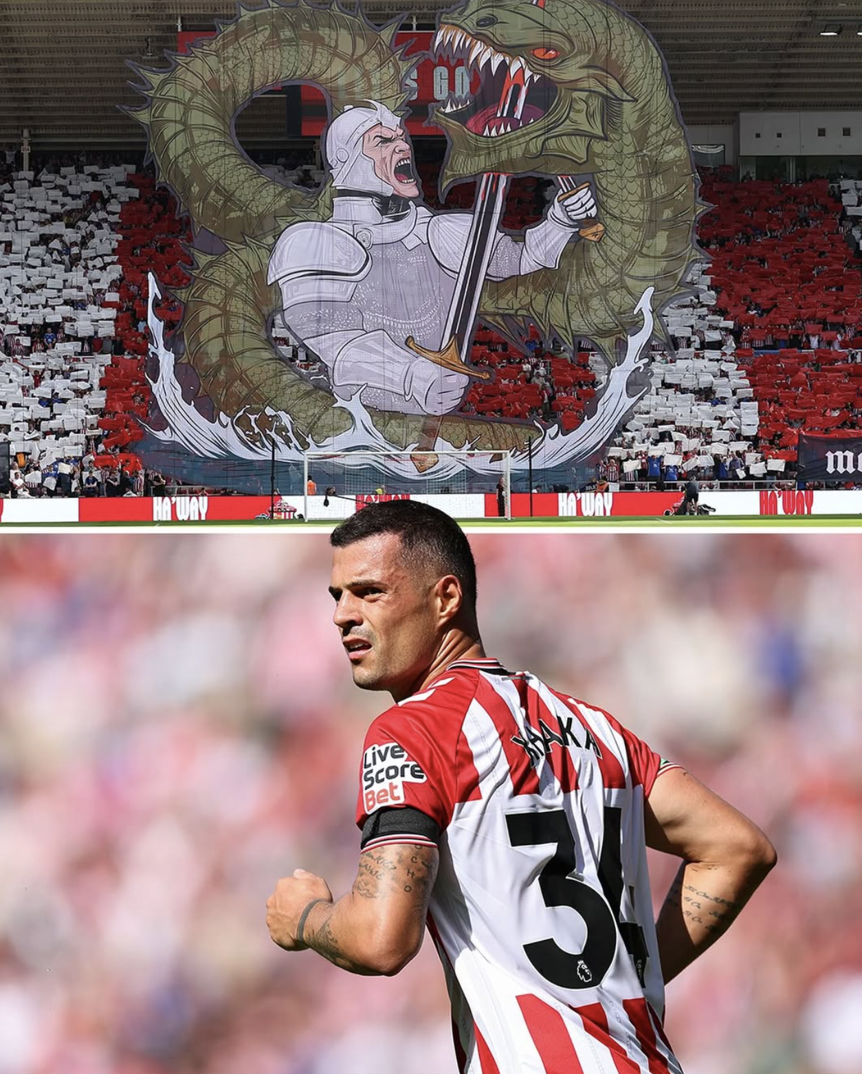 First, the fans unveiled this TIFO to mark Sunderland's first Premier League game in 8 years. Objectively terrifying. And also kind of awesome.