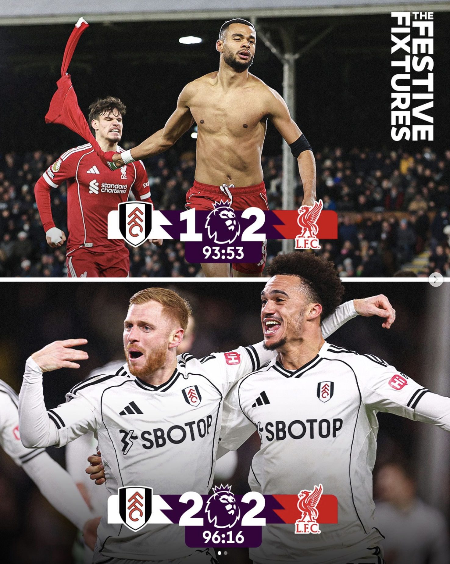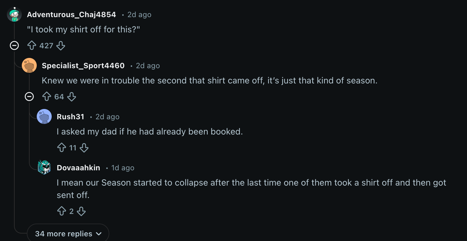It kinda feels like a loss when you whip your shirt off after you think you've won it in stoppage time, only for Fulham's Harrison Reed to score a worldie in the 97th minute. That goal slapped.
