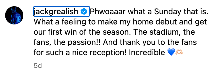 You guys probably know I'm no Grealish fan. Half the fun is trolling the absurd things he says and does off the pitch. Or listing all the words he doesn't know. There are lots of them.