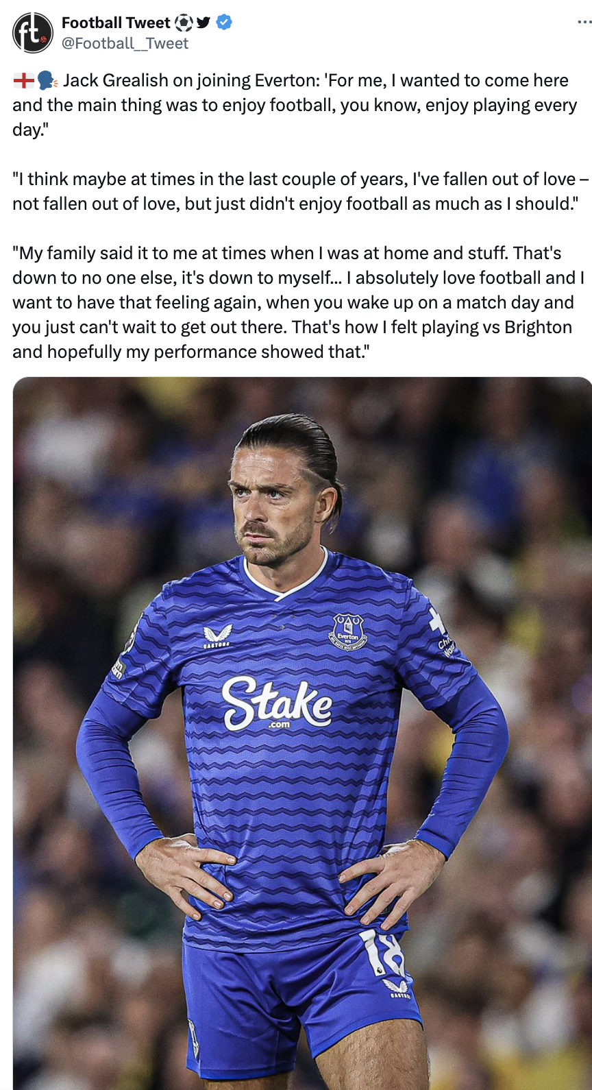 But the real glow-up is his Everton debut. At the Toffees’ shiny new stadium, Jack bagged two assists as Everton beat Brighton 2-0. Some context: that's the exact same number of assists he had in his last two Premier League SEASONS at Manchester City.
